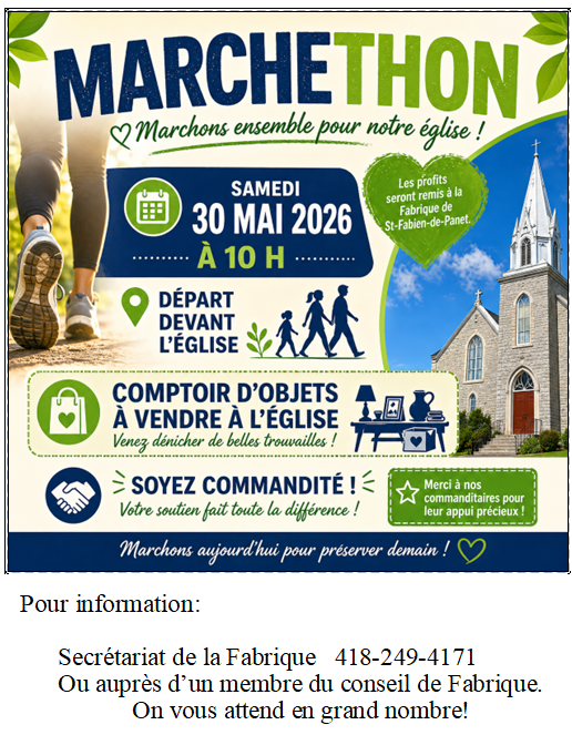 Samedi 25 avril dès 16h30 dans la salle communautaire de Saint-Fabien-de-Panet